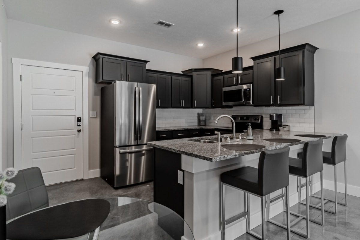 Brushed nickel fixtures and accents throughout. Modern design island kitchen with granite counter tops. Gourmet kitchens with spacious cabinetry. Oversized walk-in closets.